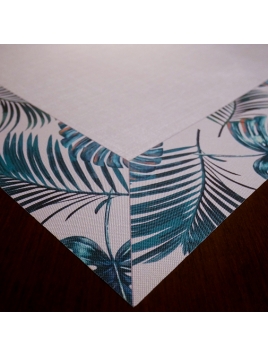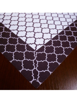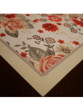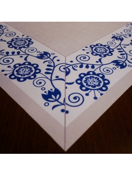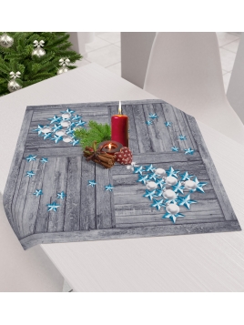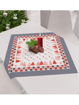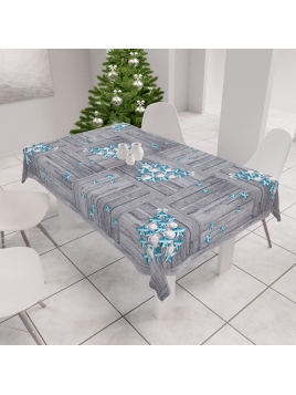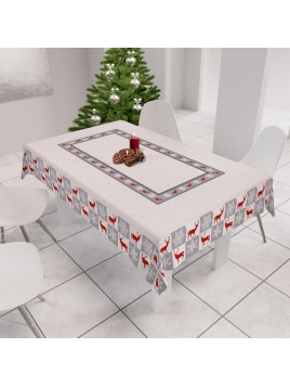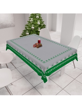 Obrus świąteczny z odpasowanym nadrukiem i powłoką hydrofobową.